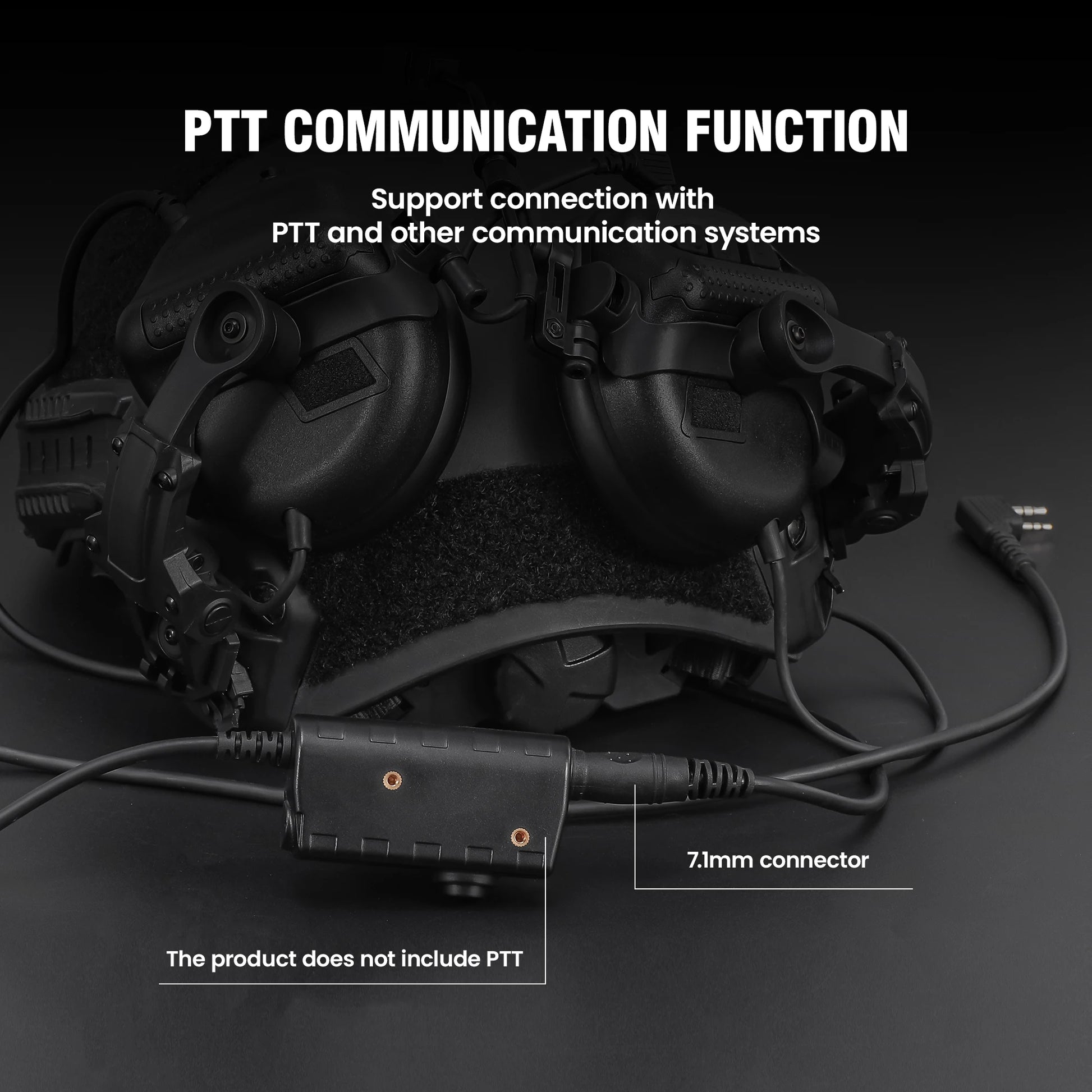 -The helmet adapter arm has a wide range of adjustment, and the helmet can be parted up when the headset is not in use, allowing the ears to fully dissipate heat.