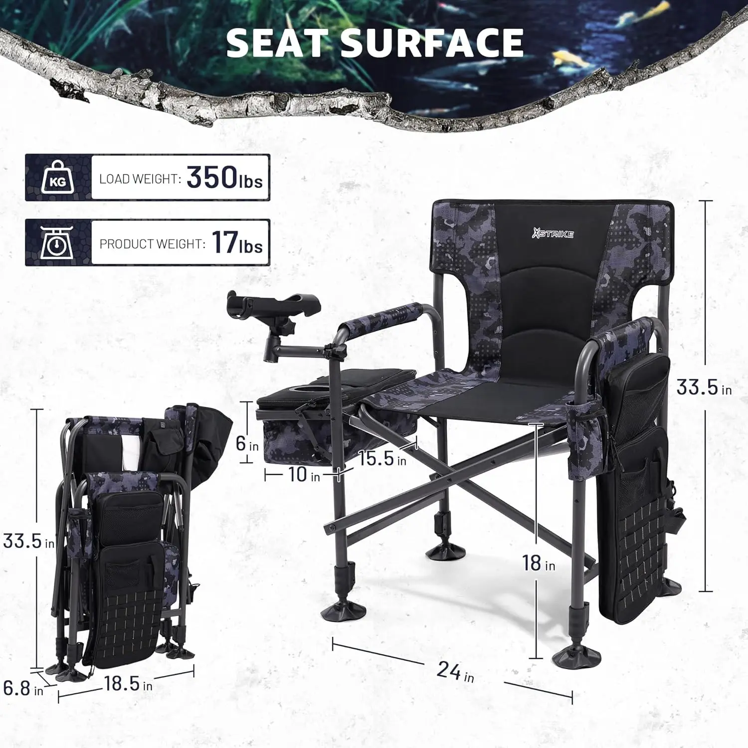 Heated Folding Fishing Chair with Rod Holder, Cooler Bag, Adjustable Feet for Outdoor Camping and Ice Fishing - 350LBS Capacity