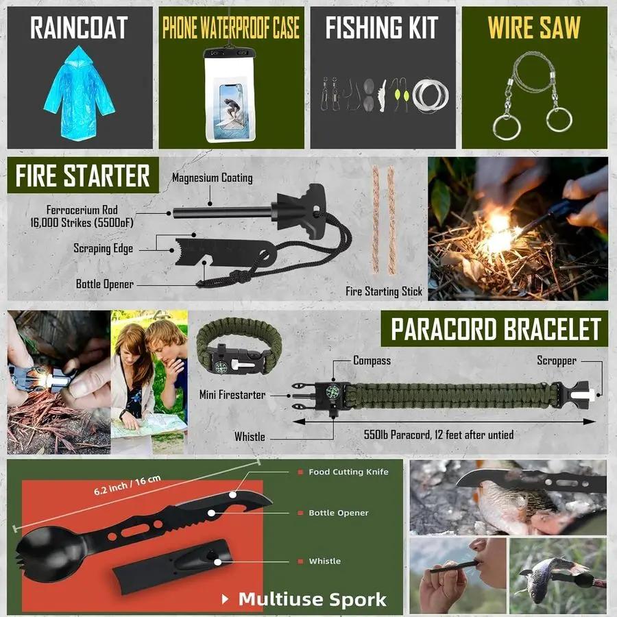 ustHave for Crisis Readinessvery tactical survival tool is weathertested for reliability in harsh environments, that can protect your family during natural disasters like floods, power outages, or storms. With organized medical supplies and multifunctional survival gear, youl stay prepared for any urgent scenario.