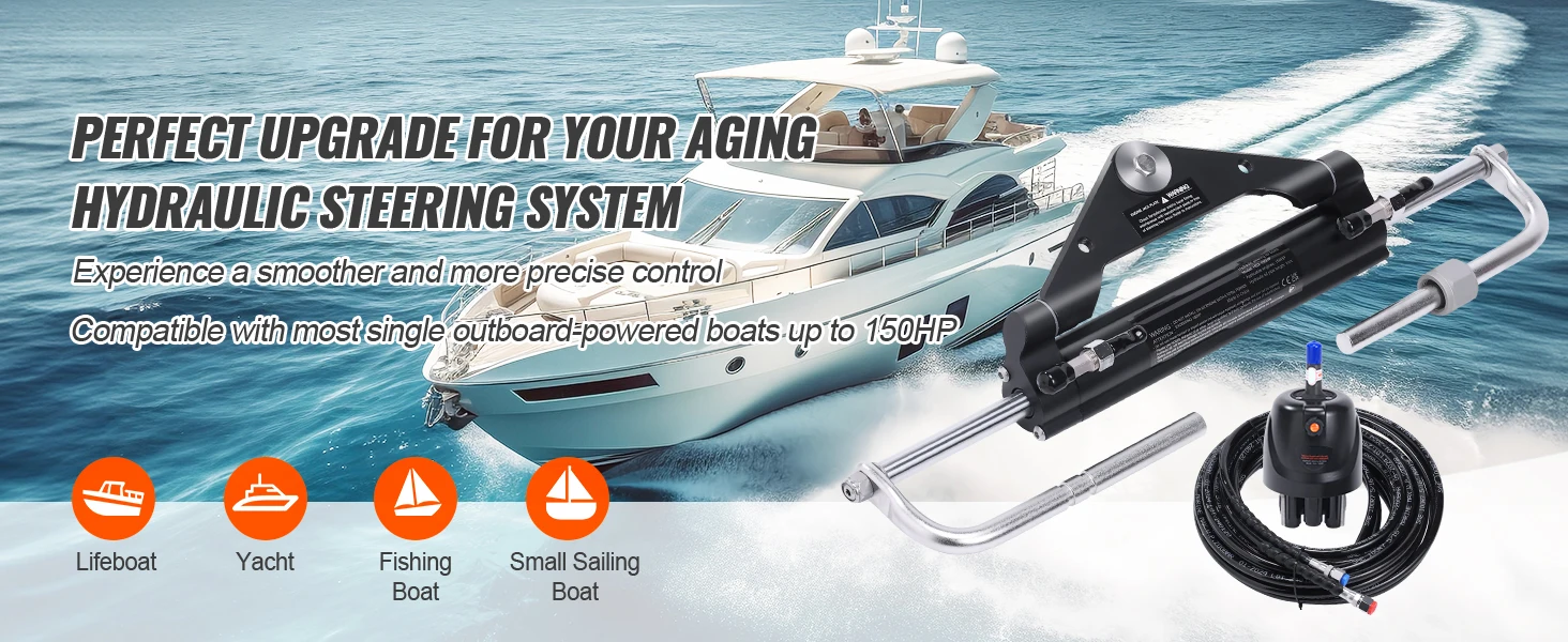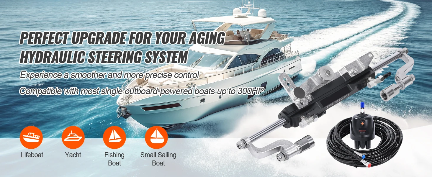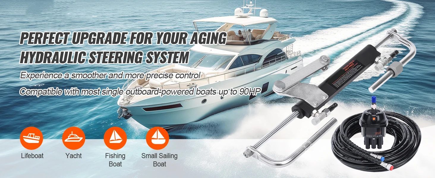 【Engineered for Versatility】: Our marine hydraulic steering system is compatible with outboard motors up to 90HP / 150HP / 150HP / 300HP and seamlessly integrates with a range of top brands, including Yamaha, Suzuki, Honda, Mercury, Nissan, and Tohatsu. Our outboard hydraulic steering kit ensures smooth and precise steering control for an exceptional boating experience.