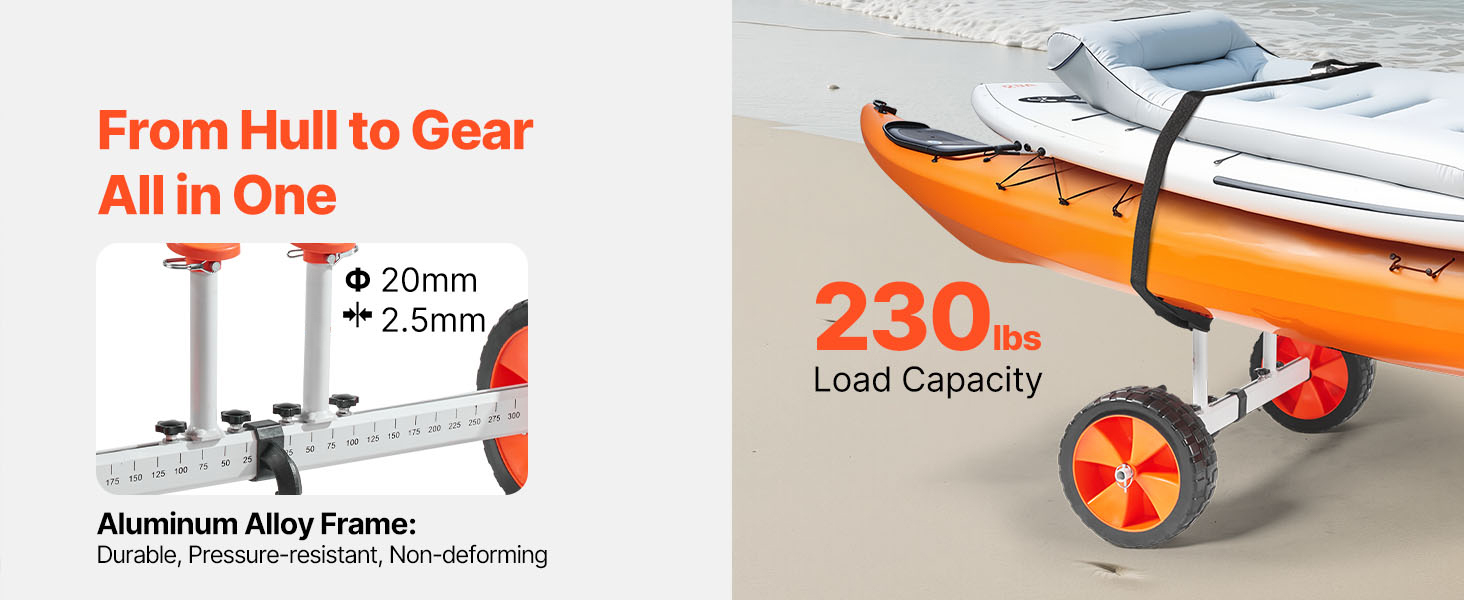 Durable and Strong: Crafted from aluminum alloy, this sturdy canoe trailer frame resists deformation and can handle loads of up to 230 lbs. Perfect for safely carrying kayaks and paddleboards on family outings and outdoor excursions.