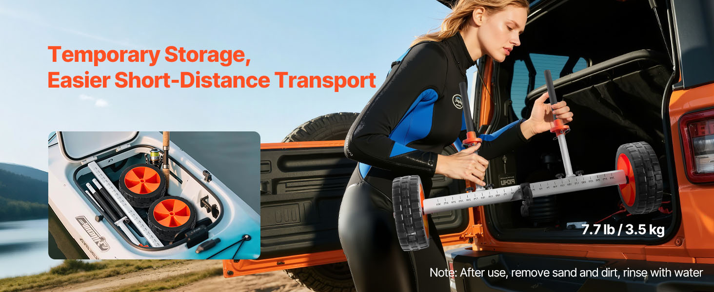 Portable and Space-Saving: Designed with a lightweight and detachable structure, this paddle board cart is easy to handle with one hand. Its compact size allows it to fit seamlessly into your car trunk or boat storage compartment, making it perfect for hassle-free transportation or convenient storage when not in use.