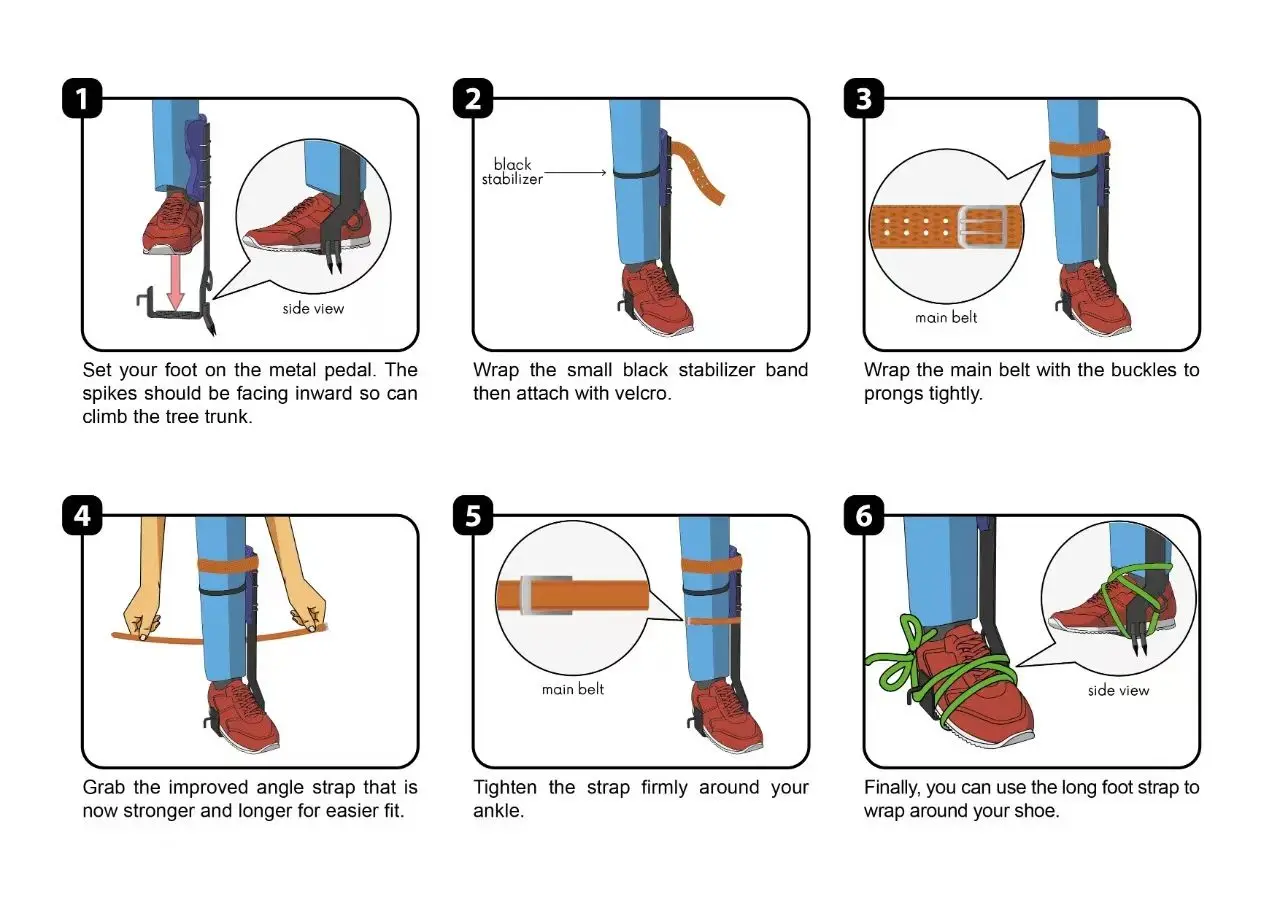 2.Please note that this product is only used as an auxiliary tool and climbing trees requires skills. Firstly, please practice slowly at a lower position, do not climb until you have mastered the tool to avoid any danger, and use the tool according to your measuring ability.