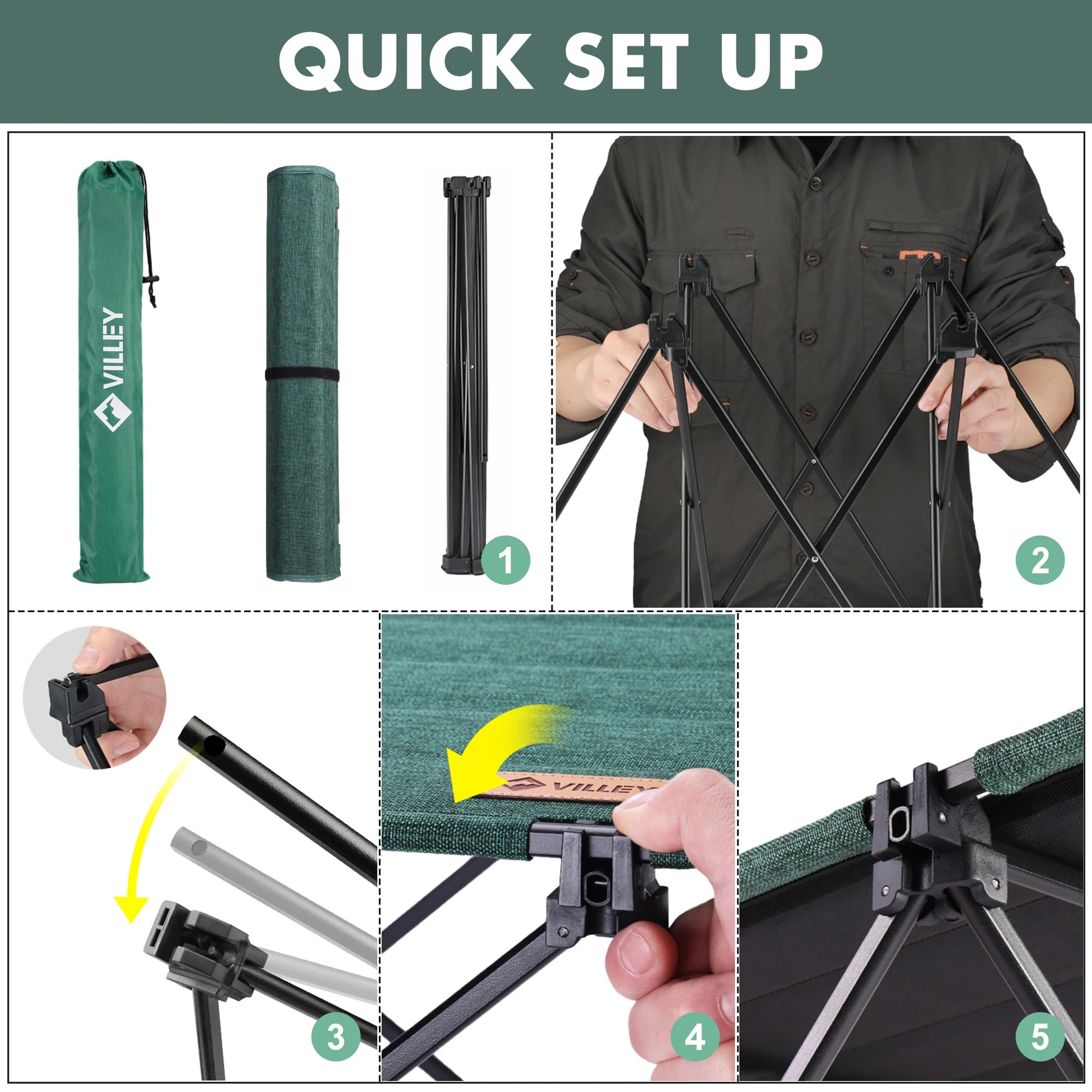 VILLEY Folding Camping Table with Carry Bag, Portable Lightweight Beach Table with Oxford Fabric and Reinforced Aluminum Panel