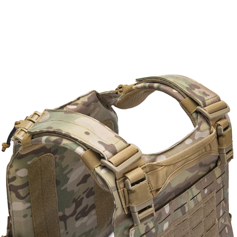 The front and back panels of the vest can be placed with M-type bulletproof plates (SAPI Plate), and the left and right panels can be placed with square bulletproof plates (Square Plate).The shoulder straps use soft mesh padding to provide comfort and breathable
